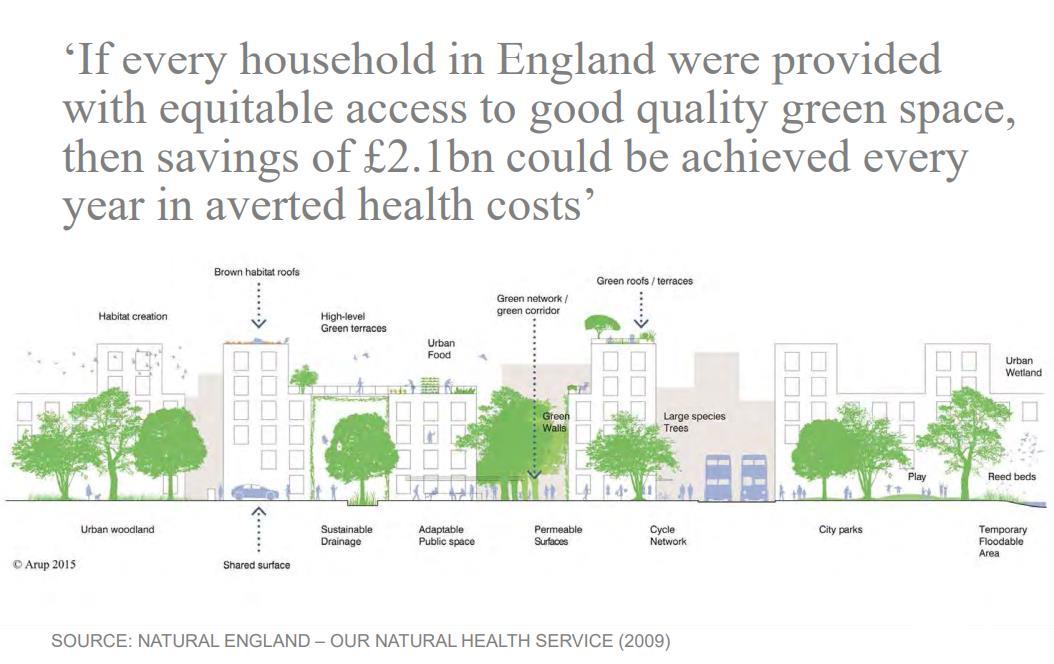 ‘... most cities woefully fail to achieve any sort of balance between people and nature. As pressure has grown on expanding urban areas, urban green space has had to compete against high land prices and increasing densities of development and urban infrastructure, thus squeezing nature out of our cities. This has had a detrimental effect on urban environments with resulting social and health impacts.’