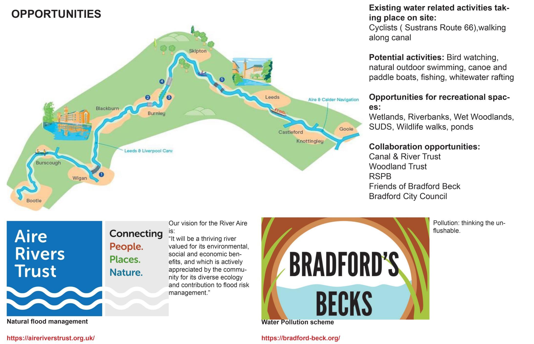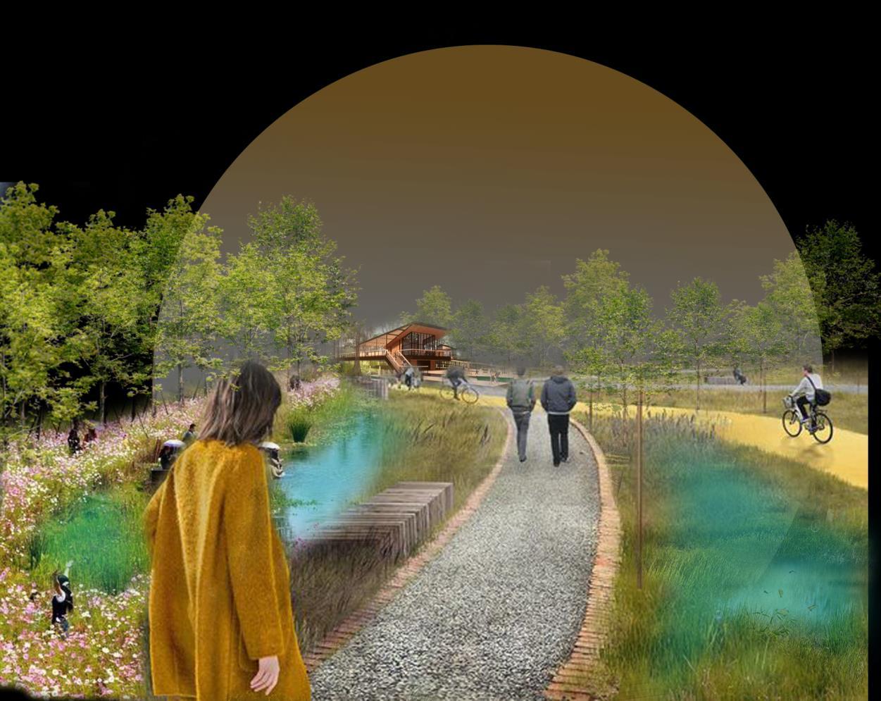 Connections from water bodies to other green spaces. To connect to the site for recreational purposes, the design is proposed to create a green corridor along the River and the Canal for pedestrians and bicycle routes along.