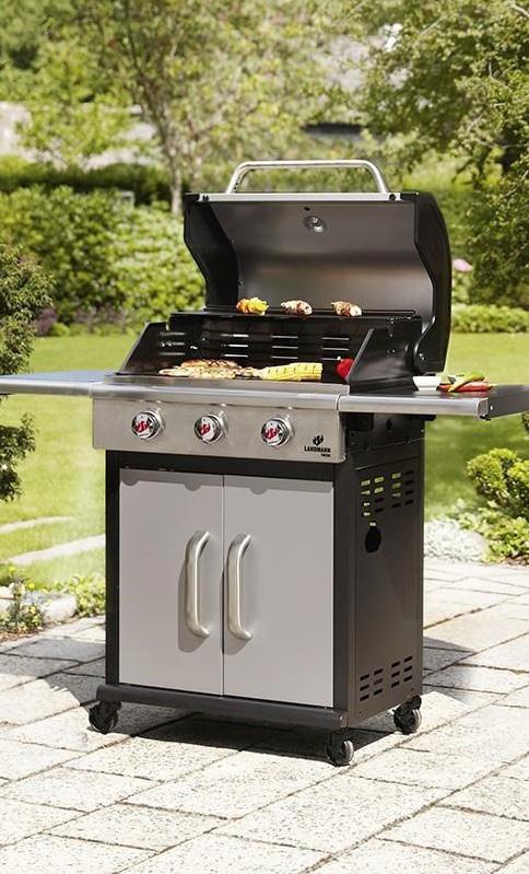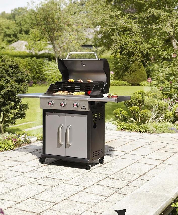 Gasgrill, Triton Þriggja brennara grill með tveimur hliðarborðum sem er hægt er að leggja niður. ATH þrýstijafnari er seldur sér. 3003050 64.990 kr
