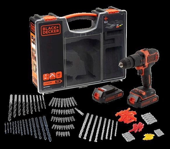 Höggborvél með tveimur 1,5 Ah Li-ion rafhlöðum, 40 Nm togi, LED lýsingu og 160 fylgihlutum, sem hentar vel fyrir fjölbreytt heimilisverkefni. 5245569