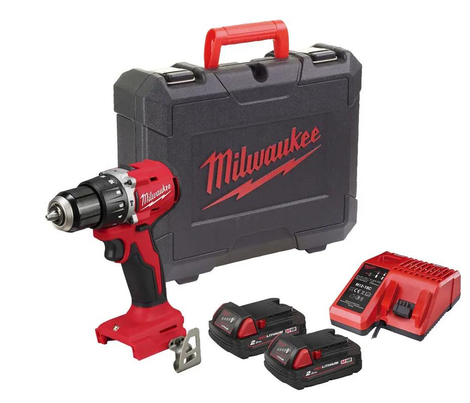 Borvél, 12V Kolalaus M12 borvél sem er sérstaklega hönnuð fyrir vinnu á erfiðum og þröngum stöðum. Með aðeins 9,5 cm langan haus kemst hún auðveldlega í rými sem hefðbundnar borvélar ná ekki. Vélin skilar miklu afli og er seld í setti með 2.0 Ah rafhlöðu, hleðslutæki og tösku. 5255749
