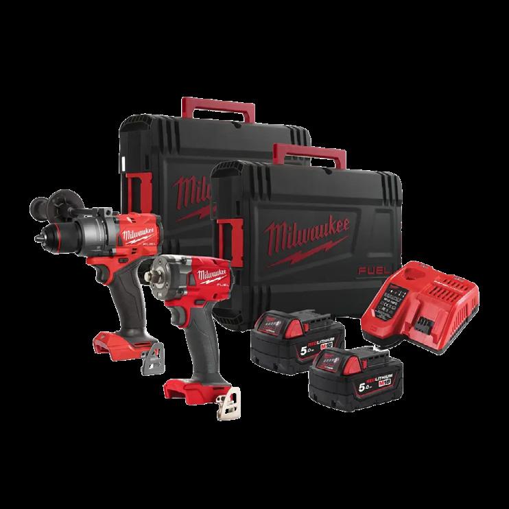 Sett, 18V Öflugt M18 FUELTM tækjasett sem inniheldur nýjustu kynslóð kolalausra höggborvéla og herslulykils frá Milwaukee. Settið skilar hámarks afköstum við krefjandi verkefni og kemur með tveimur 5.0 Ah rafhlöðum, hleðslutæki og sterkri HD-box tösku. 5255984