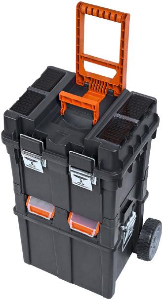 Stór hólf fyrir verkfæri. Þykkur, vatnsheldur botn. Handfang og ól.