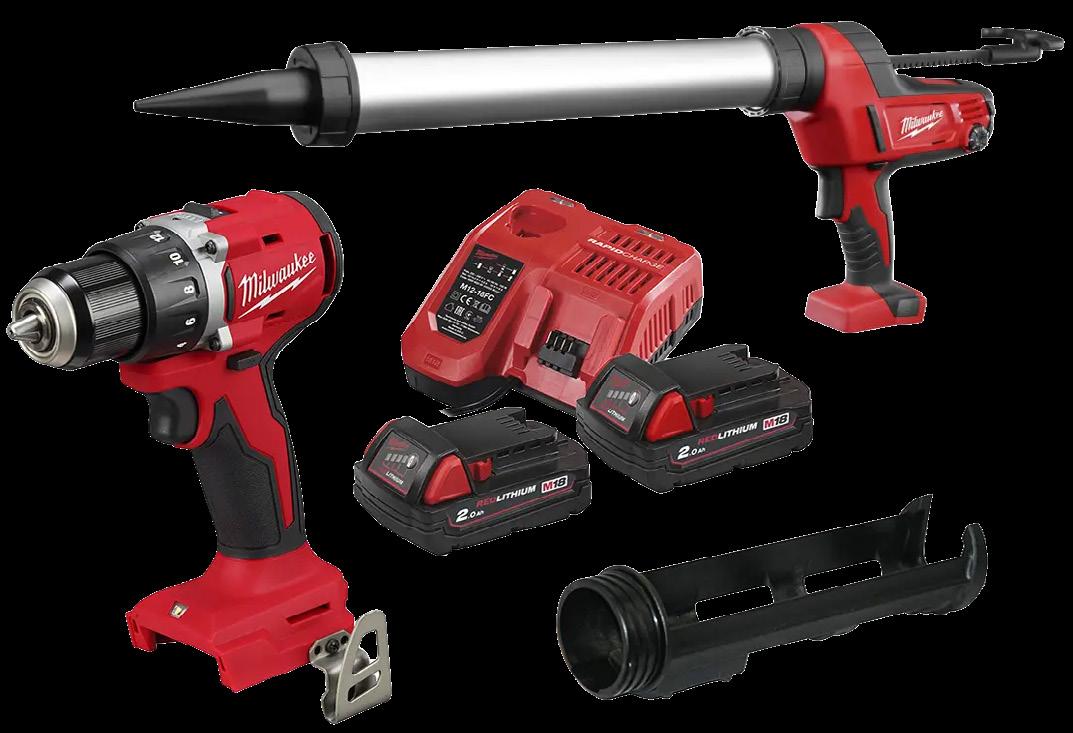 Inniheldur: M18 BLDDRC-0 bor-/ skrúfvél, létt, öflug, nákvæm stjórn og hámarks tog 60,5 Nm. Heavy Duty C18 PCG/600A-0B, kíttisgrind – 6-stiga hraðastilling, sjálfvirkt afturstreymi, hár þrýstikraftur 2× M18 REDLITHIUM. 2,0 Ah rafhlöður + hraðhleðslutæki M12-18FC. Sveigjanlegt, kraftmikið og tilbúið til notkunar – fyrir fagmenn og handverksfólk sem vilja hraða, áreiðanlega og fjölhæfa lausn. 5255975