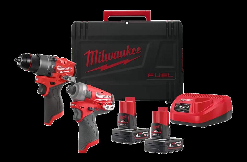 Öflugt M12 FUELTM tækjasett sem inniheldur kolalausa borvél og höggskrúfvél sem skila hámarks afköstum í fyrirferðarlítilli hönnun. Settið er afhent með tveimur rafhlöðum, hleðslutæki og sterkri tösku, sem gerir það að tilvalinni lausn fyrir fagaðila sem krefjast krafts og snerpu. 5255979