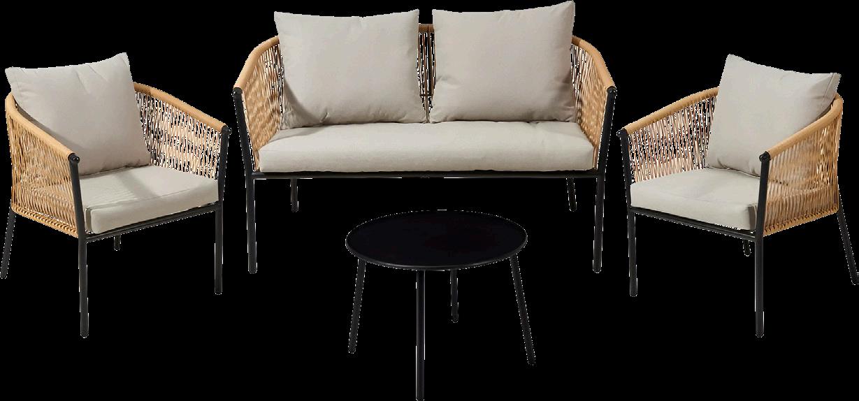 Sófasett úr svörtu rattan og stáli er tilvalin lausn til að skapa notalega stemningu á pallinum eða í garðinum. Settið samanstendur af tveggja manna sófa, tveimur þægilegum stólum og hagnýtu borði, ásamt sessum sem tryggja hámarks vellíðan í sumarblíðunni. 2991169