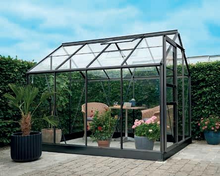 Det perfekte drivhus til haveejeren, der ønsker god plads. Den letløbende dobbelte skydedør giver fri og uhindret adgang selv med trillebør eller kørestol, og den gode sidehøjde sikrer god plads til dig og dine planter. 4 stk. ventilationsvinduer og fundament (inkl.).
