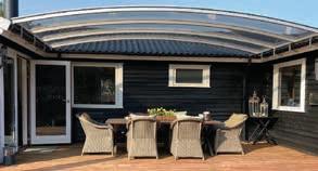 Hældningen på taget er blevet øget for at give en højere rumfornemmelse. Derudover medvirker hældning også til en større modstandsdygtighed mod snebelastning. Dobbelt skydedør, 4 stk. ventilationsvinduer og fundament (inkl.). Aluminiumsprofil og 3 mm hærdet glas i hele baner.