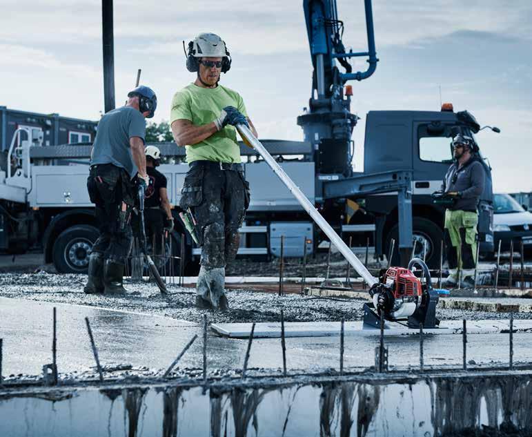 Husqvarna har ett brett utbud av utrustning för alla steg i processen betongbearbetning – vibrering, utjämning och ytbehandling av gjutna betongytor och -golv.