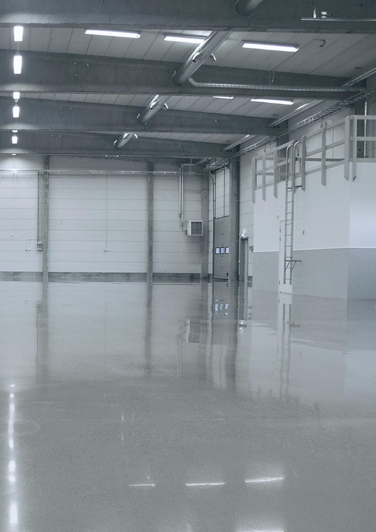 ОБЛАСТЬ ПРИМЕНЕНИЯ Метод Hipertrowel™ идеально подходит для промышленных полов площадью от 500 м². С помощью системы Hipertrowel™ можно обрабатывать как свежезалитые бетонные поверхности, так и старые полы. HIPERTROWEL™ — ИДЕАЛЬНОЕ РЕШЕНИЕ, КОГДА: ■ Время имеет решающее значение ■ Простои должны быть сведены к минимуму ■ Необходимо беспылевое решение ■ Объем технического обслуживания должен быть небольшим ■ Не требуется выравнивание пола ВОЗМОЖНЫЕ КОНЕЧНЫЕ РЕЗУЛЬТАТЫ Система Hipertrowel™ позволяет создать гладкий функциональный пол без частиц пыли и с высокой отражающей способностью. Благодаря гладкому полу снижается уровень шума и вибрации используемого на нем оборудования. ПРИМЕР ПОВЕРХНОСТИ Глянцевая крапчатая поверхность Показатели производительности могут значительно различаться в зависимости от выбранного процесса и желаемого результата. Кроме того, производительность зависит от площади пола, качества и твердости бетона, а также наличия препятствий на полу.