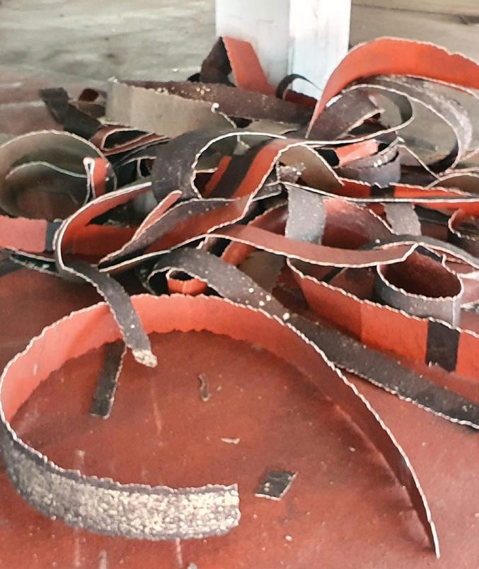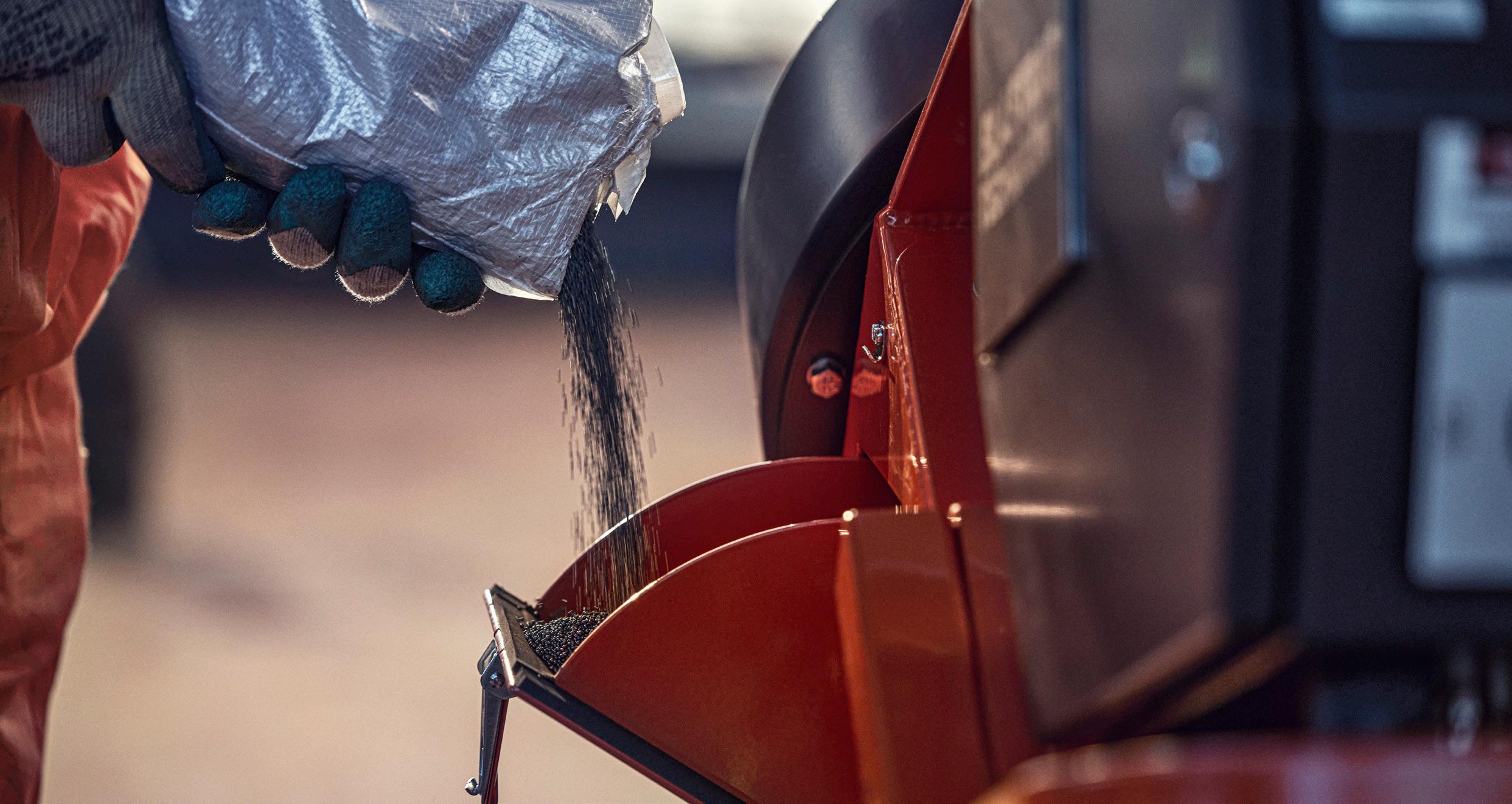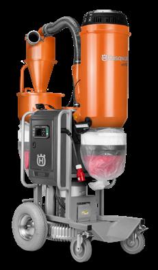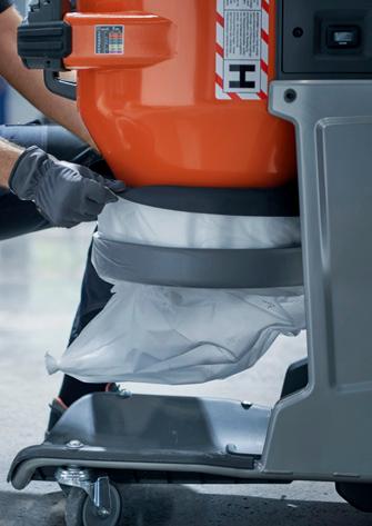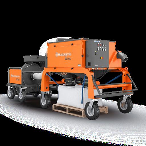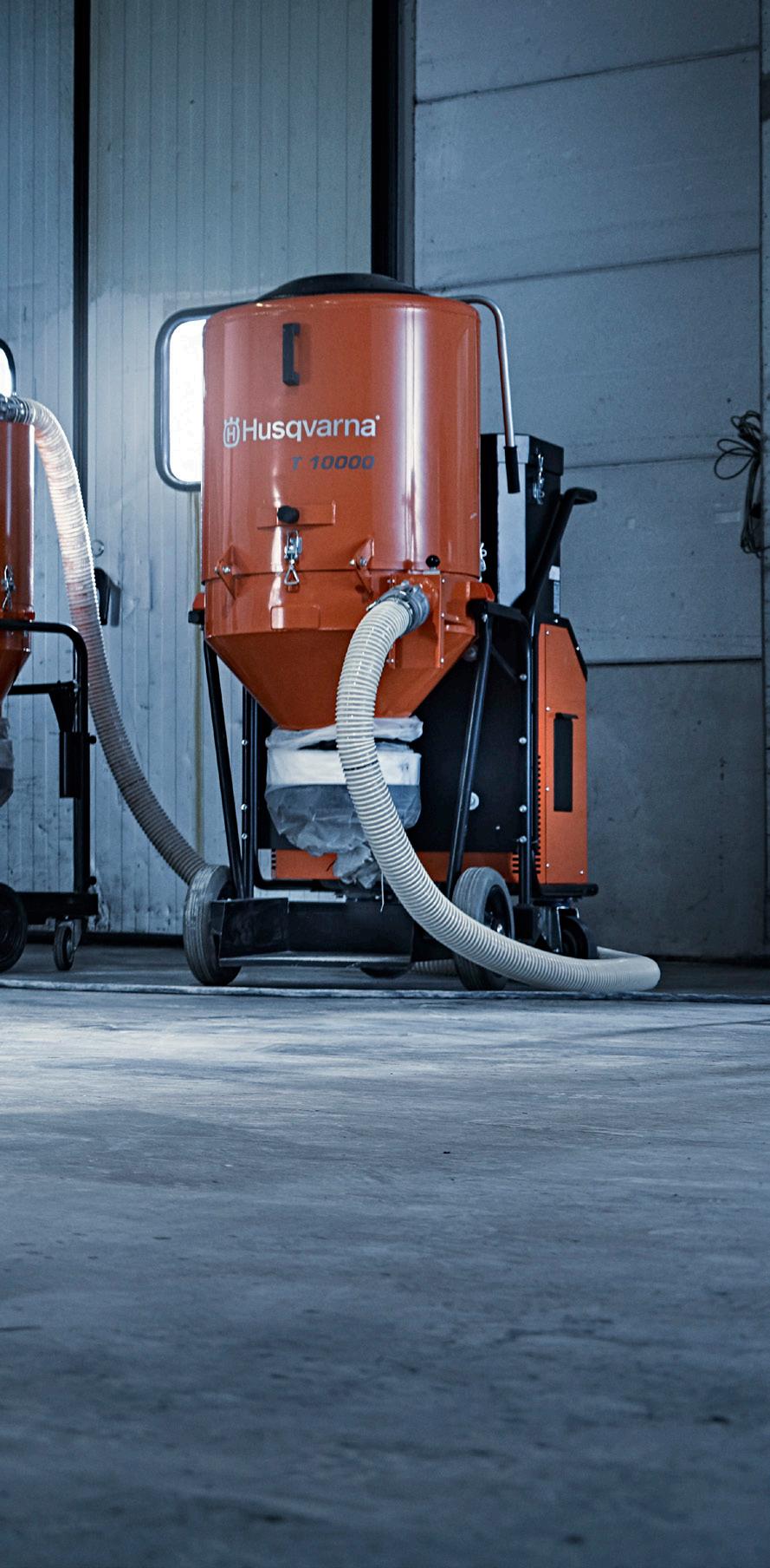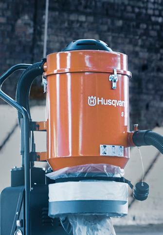 Når stålet rammer overfladen, genbruger slyngrenseren mediet. Støv og forurenende stoffer fjernes af en luftvaskeseparator og fjernes til en dedikeret Husqvarnastøvopsamler. Det gør processen næsten støvfri.