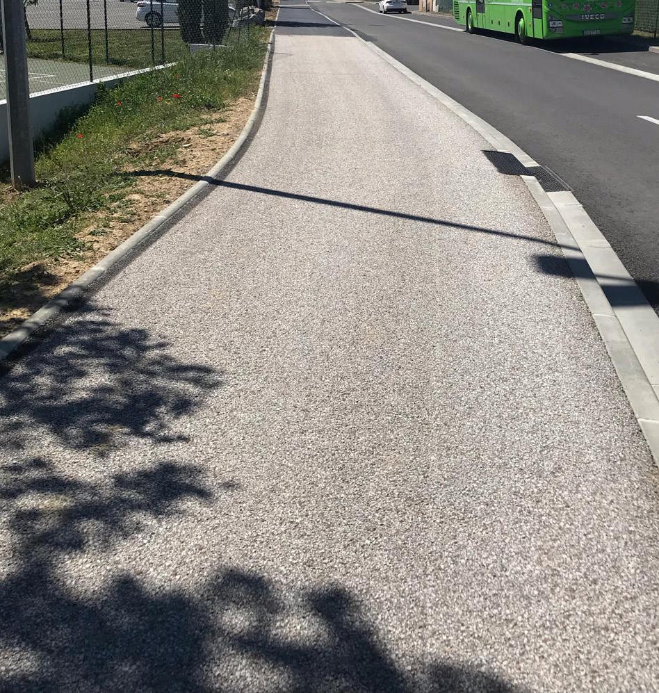 Fjernelse af bindemidlet på asfaltoverflader for at vise den naturlige skønhed af de farvede aggregatpartikler betragtes ofte som den bedste løsning til at forbedre æstetikken på asfalt, fordi det sparer vedligeholdelsesomkostningerne. Asfalt kan også poleres for at få en glat overflade med blotlagte aggregater.