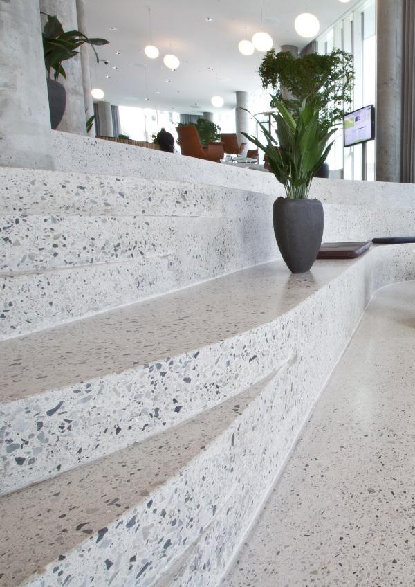 Gulvene får mere og mere fokus fra arkitekter og anlægsejere, når det kommer til funktionelle og æstetiske specifikationer. Mekanisk raffineringsmateriale, der allerede indgår i en konstruktionsstruktur, f.eks. beton, er ofte et bæredygtigt og smart valg.