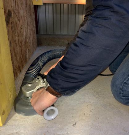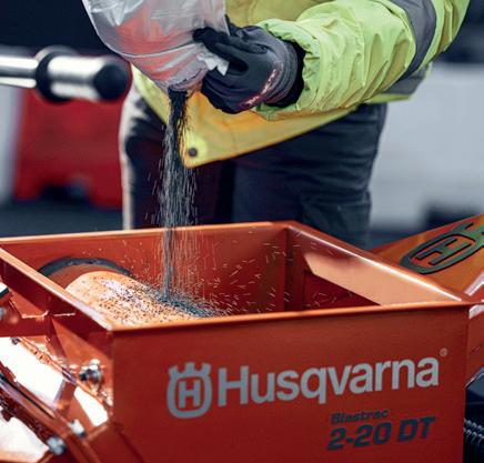 Miután az acél csiszolóanyag eléri a felületet, a szemcseszóró újrahasznosítja az anyagot. A port és a szennyeződéseket egy légmosós leválasztó távolítja el, és egy erre a célra szolgáló Husqvarna porgyűjtőbe kerül. Ezáltal a folyamat működés közben szinte pormentes.