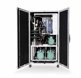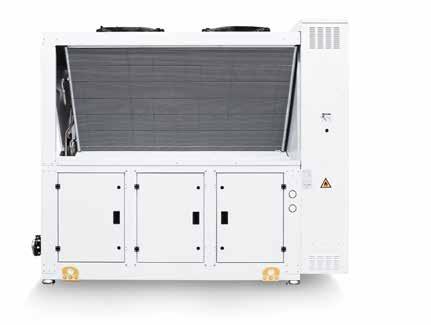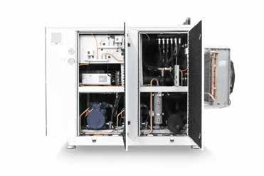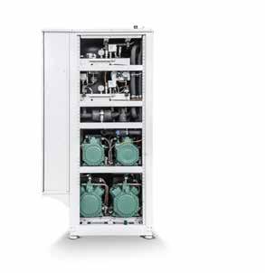 Comprehensive modular frame construction is assembled with high-quality EC fan motor technology, microchannel heat exchangers, reciprocating compressors. The galvanized steel and powder coated frame with a reliable 20 mm non-flammable acoustical PU foam insulation material ensures proper unit protection as well as noise reduction. An additional 30 mm rock wool material can be supplemented for a super silent unit operation.