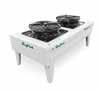 High capacity range dry cooler series, perfect for large industrial refrigeration systems. 4 heat exchangers and double fan row can provide especially large heat capacity within limited placement area, making it the unit with the highest power supply per square meter. Available heat capacity ranges over 1 MW under nominal conditions (when ETG is 35%, Tin is 45°C, Tout is 40°C and Tamb is 35°C).