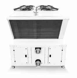 V shaped construction, assembled with inner 7,94 x 0,54 mm grooved copper tubes, aluminum or copper fins and EC fan motor technology. The galvanized steel and powder coated frame can be designed in various sizes.