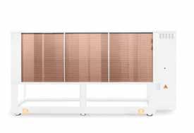 W shaped large construction, assembled with smooth copper tubes, aluminum or copper fins and AC/EC fan motor technology. The clever frame design also allows for the installation of additional equipment under the dry cooler.