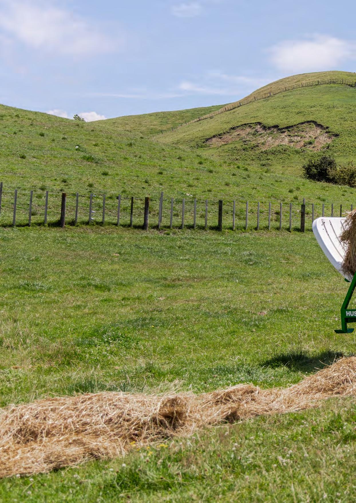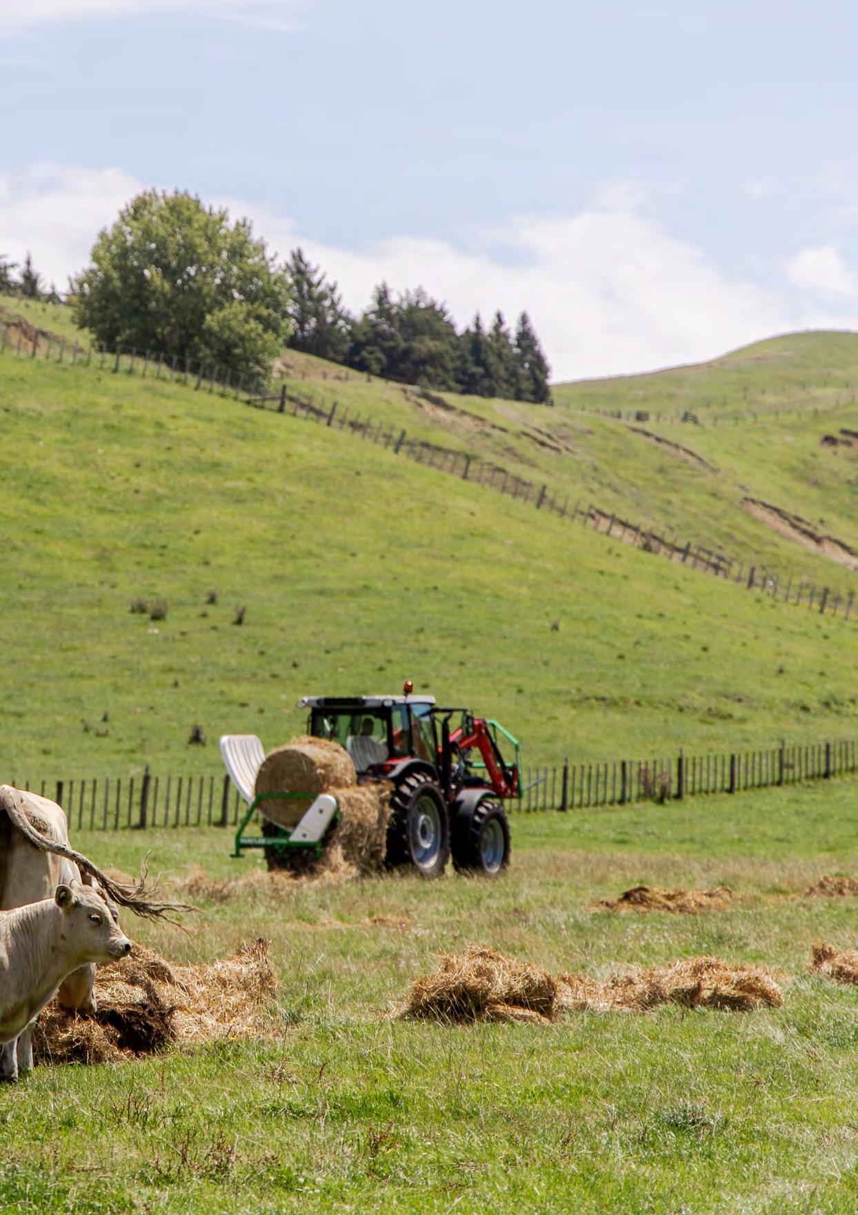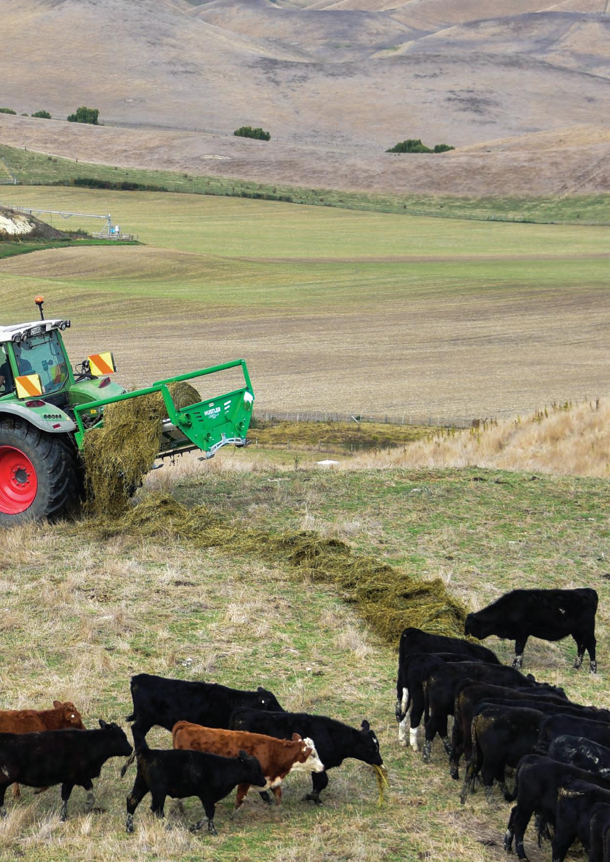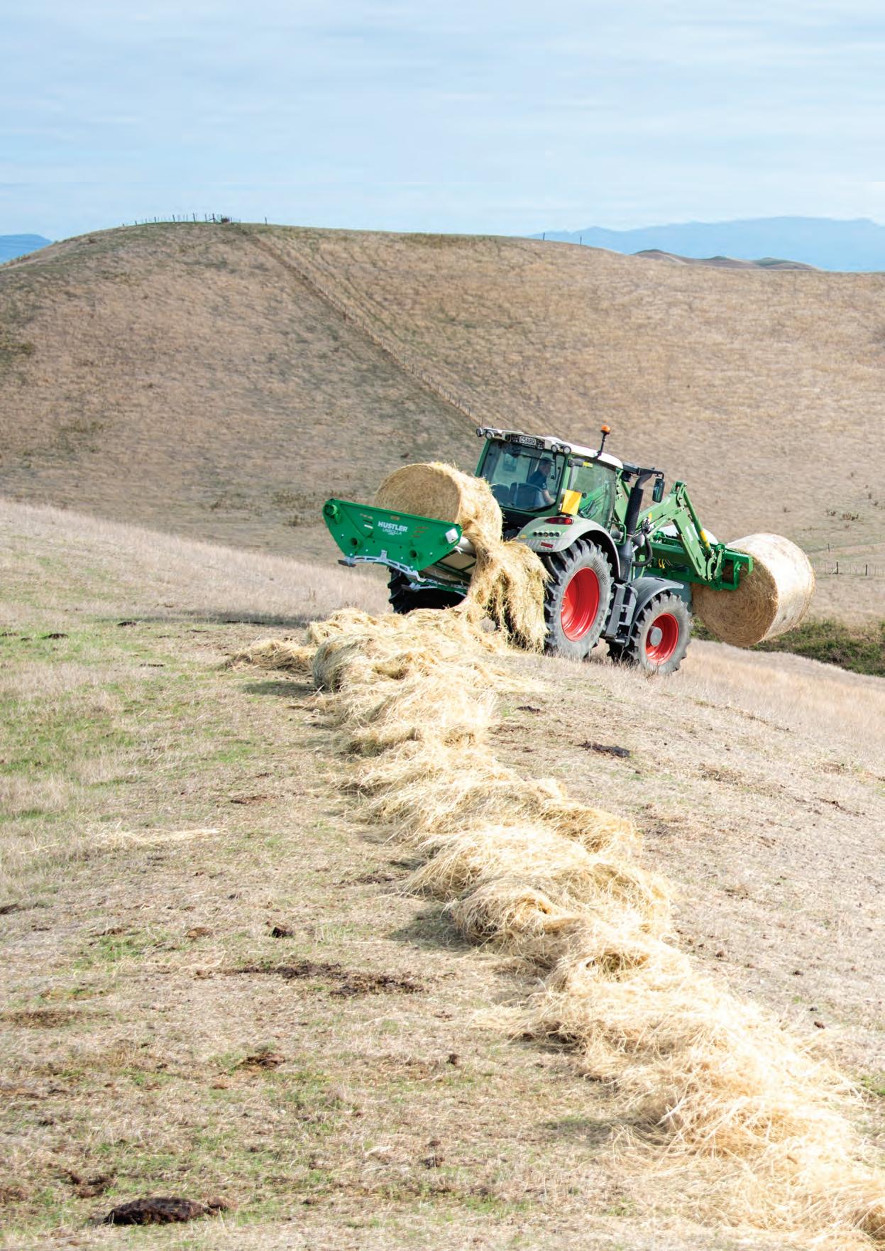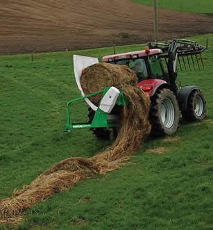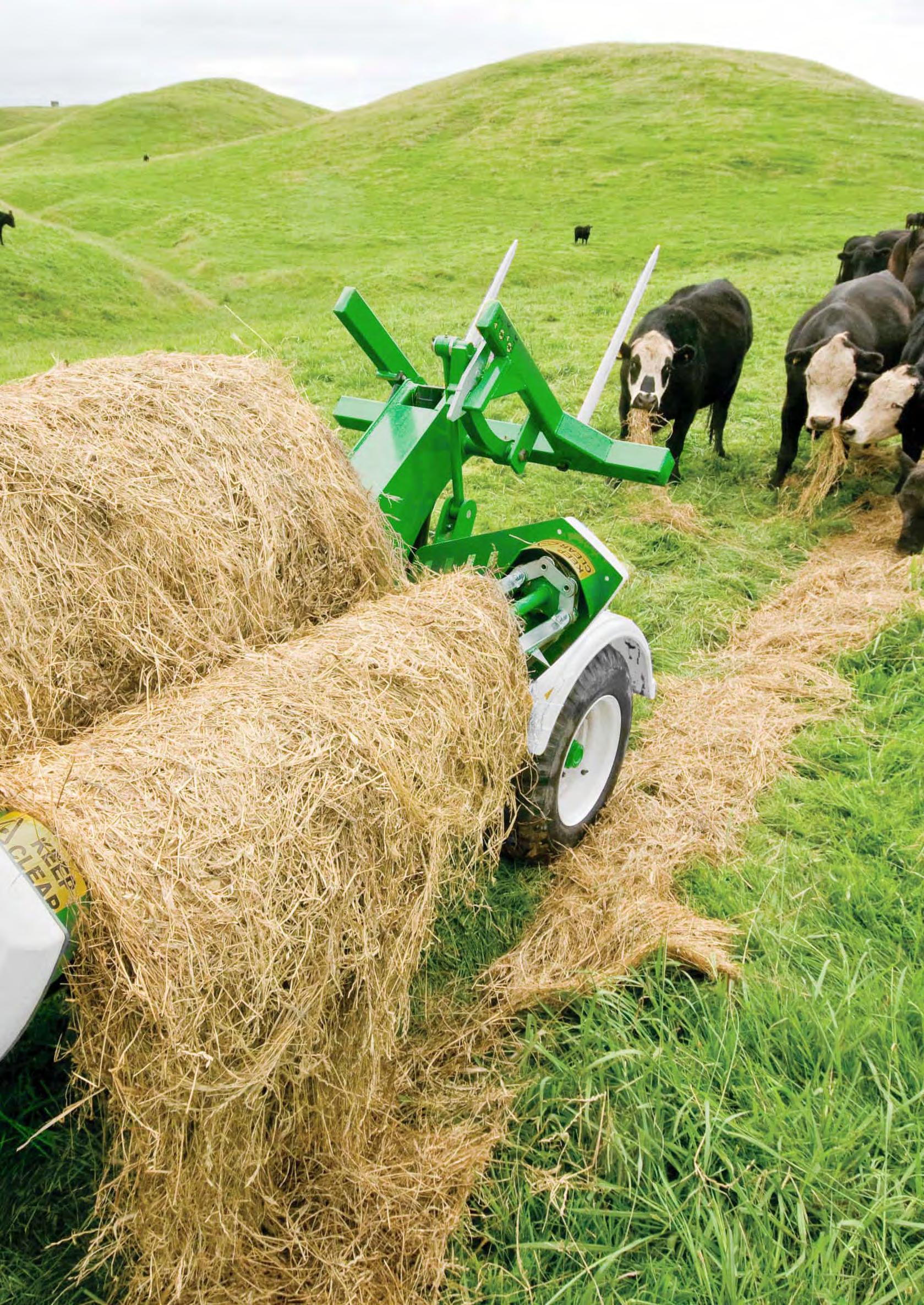 The bale feeder lays down a fluffedup windrow which stock can easily eat, reducing wasted feed being trampled into the ground.
