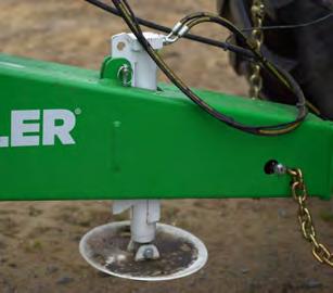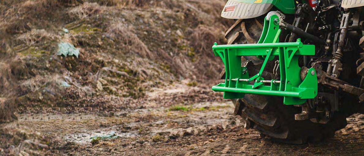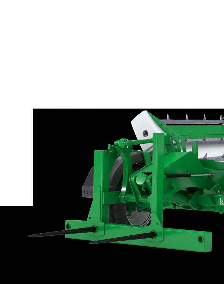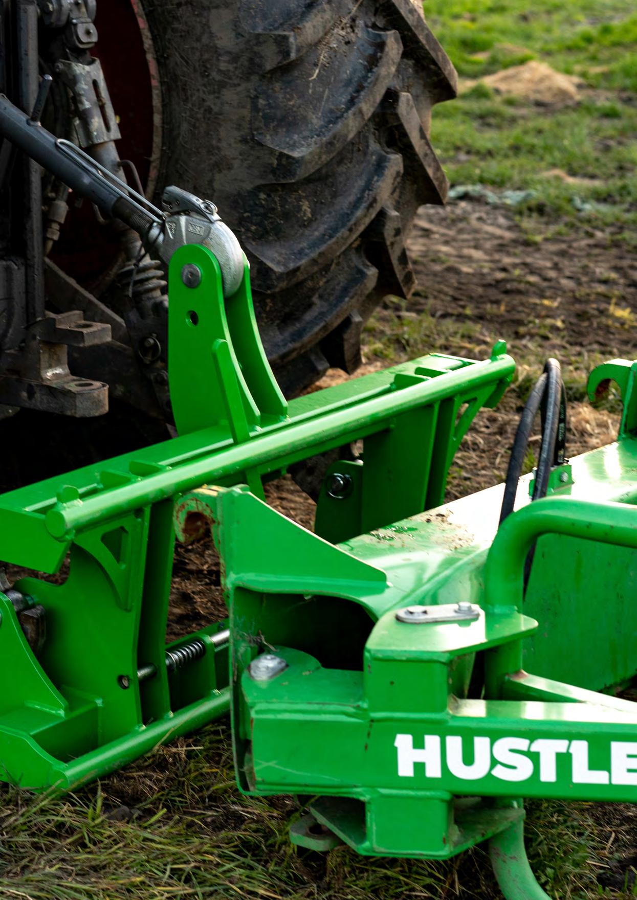Stands up on its own, making it easy to store, and connect to the tractor with huge lower linkage arm clearance. ISO standard hitch mounts ensure linkage arms go low enough to connect.