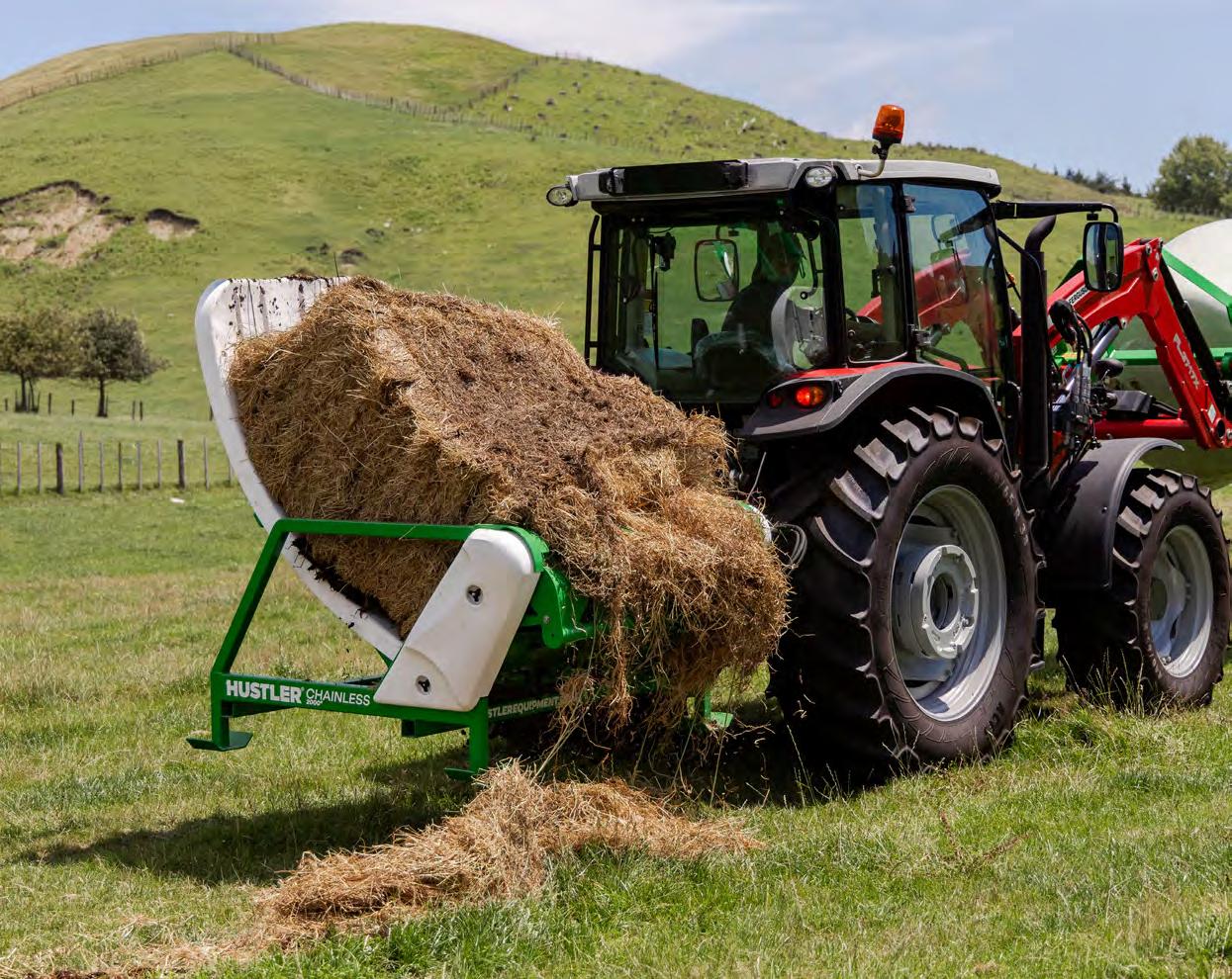 Hustler’s patented chainless bale-feeding technology gives farmers a giant step-up in the way they feed stock.