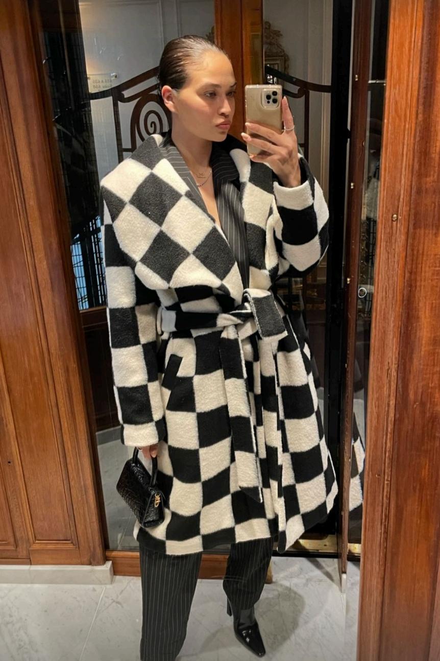The outerwear category is designed to finish the look or stand on its own. The edit includes short and long coats in elevated textures like faux leather, faux fur, and tweed. Each piece adds dimension and warmth, offering a coolweather layer that can top off an outfit or be the outfit itself.