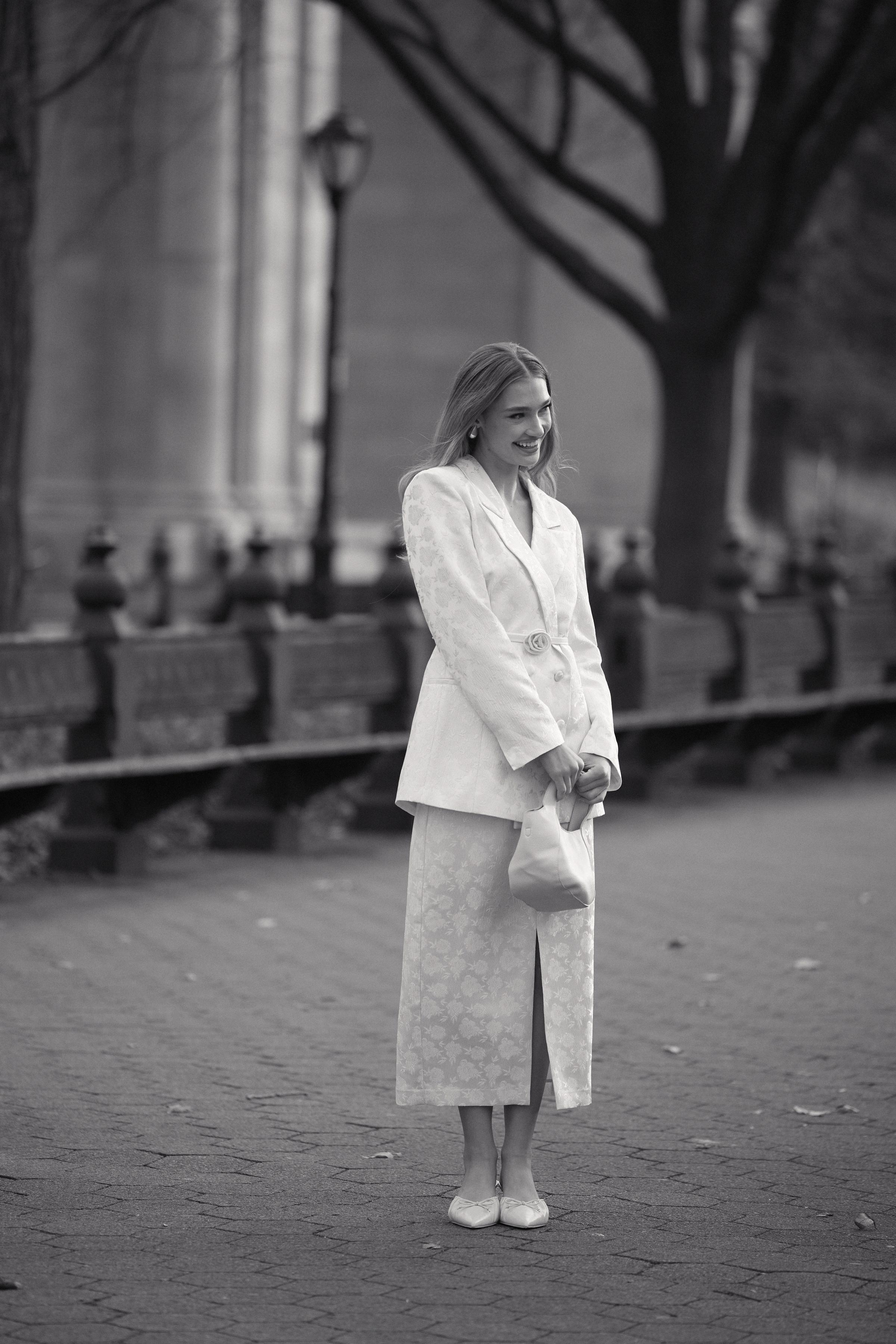 Every design choice considers where she’s going: volume where it matters, movement where it counts, and silhouettes that support her day-to-night life.