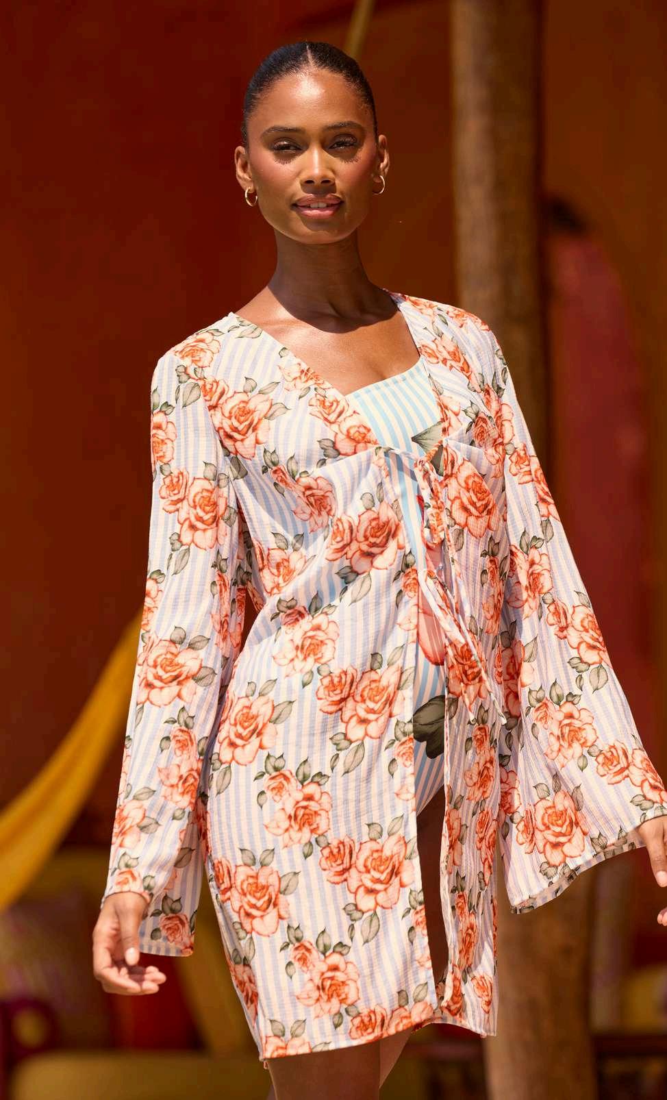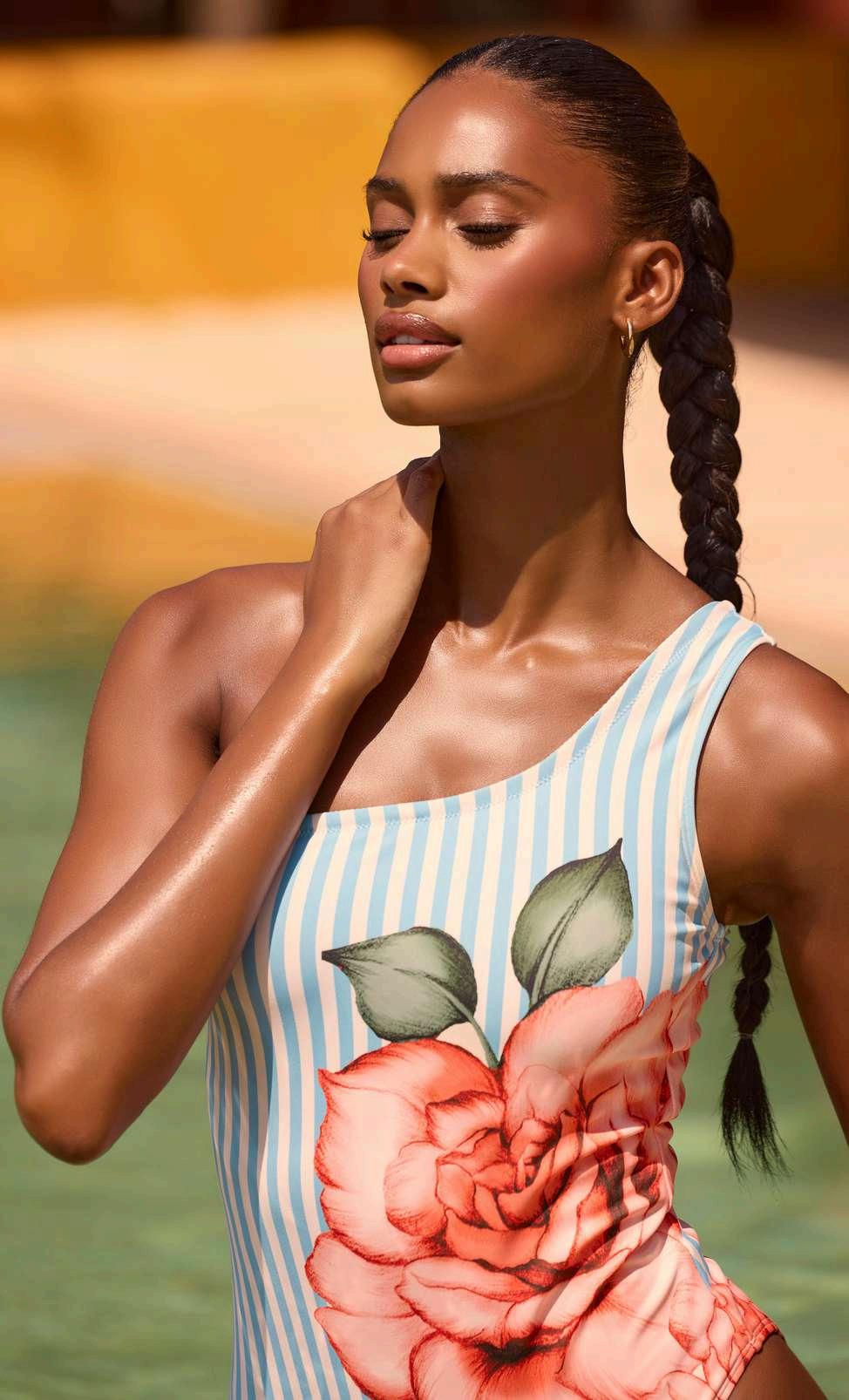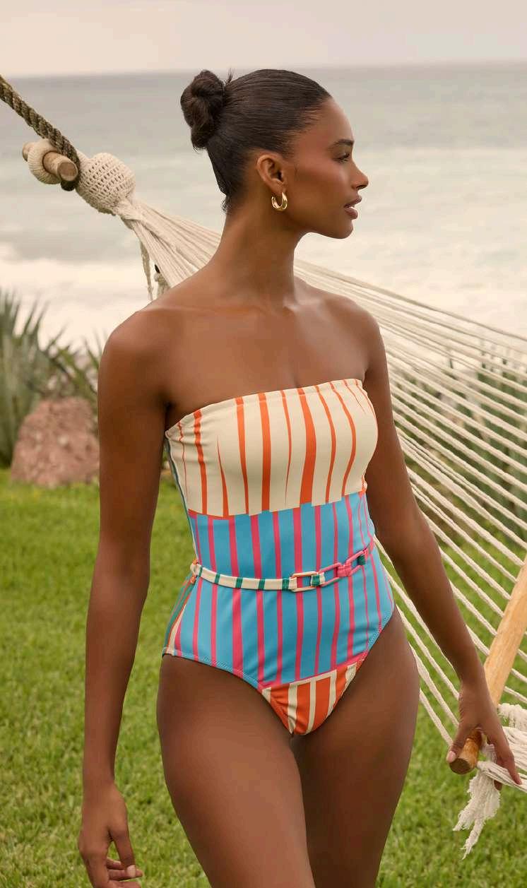 t h e s t e l l a o n ep i e c e i n c o r a l s t r i p e d p l a c e m e n t r o s e