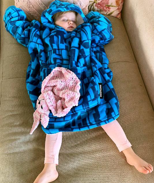 BROOKE Wilson’s daughter, Aurora, models a popular addition to Hutchies’ clothing range for winter – the new Hutchies’ Hootchie – a snugly warm and wearable hooded blanket that comes in all sizes from kids to adults. Scott Hutchinson says they are “so good they put your kids to sleep”.