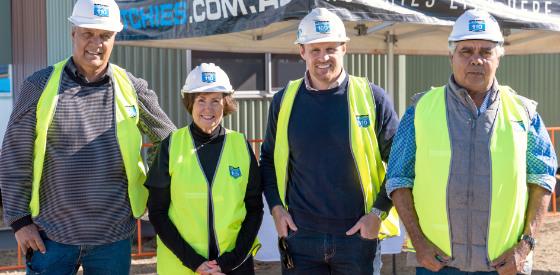 The visit included an exclusive walkthrough of Hutchies’ modular yard where the project is being fabricated before being transported 4,200 kilometres to WA to form the new Manjali Studio School.
