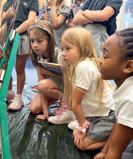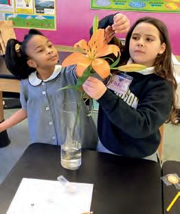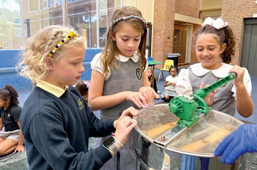 Top: Lower school girls are learning about the life cycle of bees and helping to harvest honey from the bees on the Katherine and John Dobbs Farm.