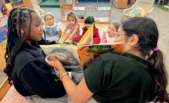 Middle: Middle school members of the Tome Student Literacy Society share their love of reading with our early childhood girls.