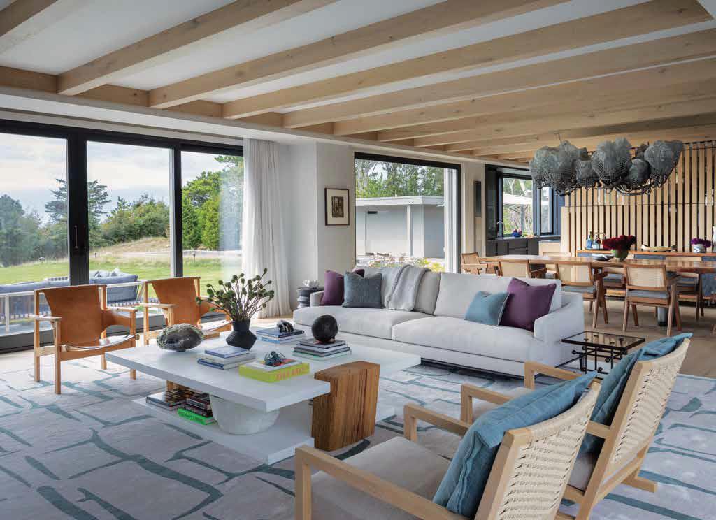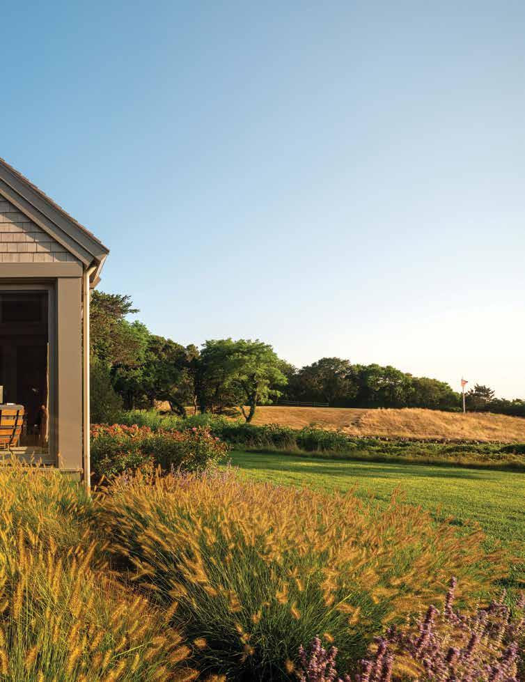 This sense of comfort and ease extends to the landscape and outdoor areas—whether it be the screened porch, whose panels open up, the pool house’s covered terrace, or the firepit near the beach.
