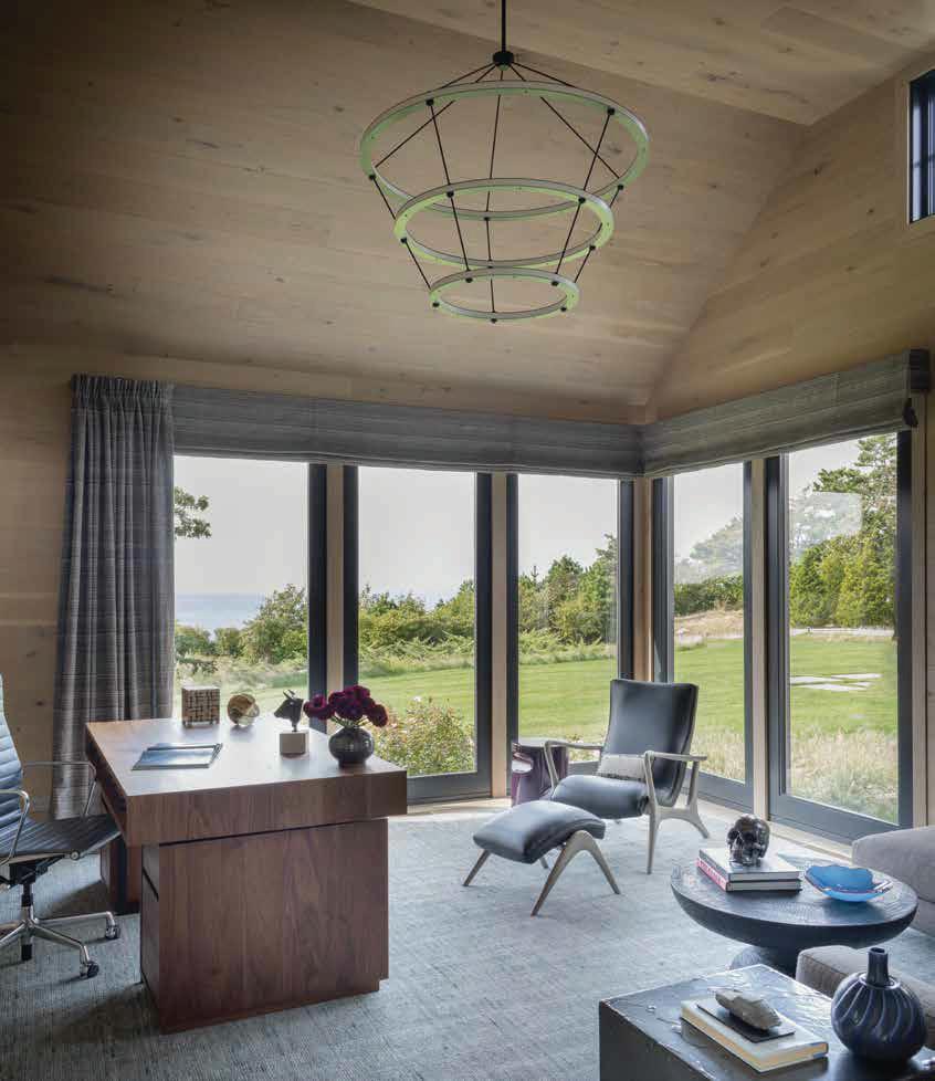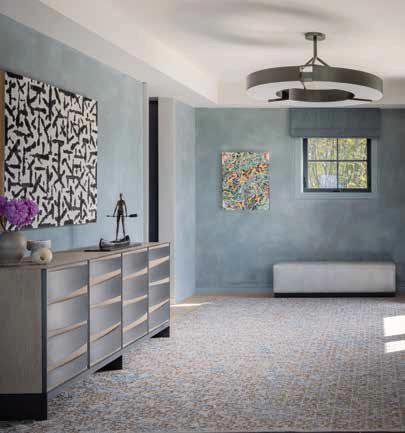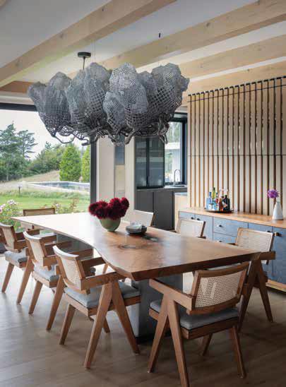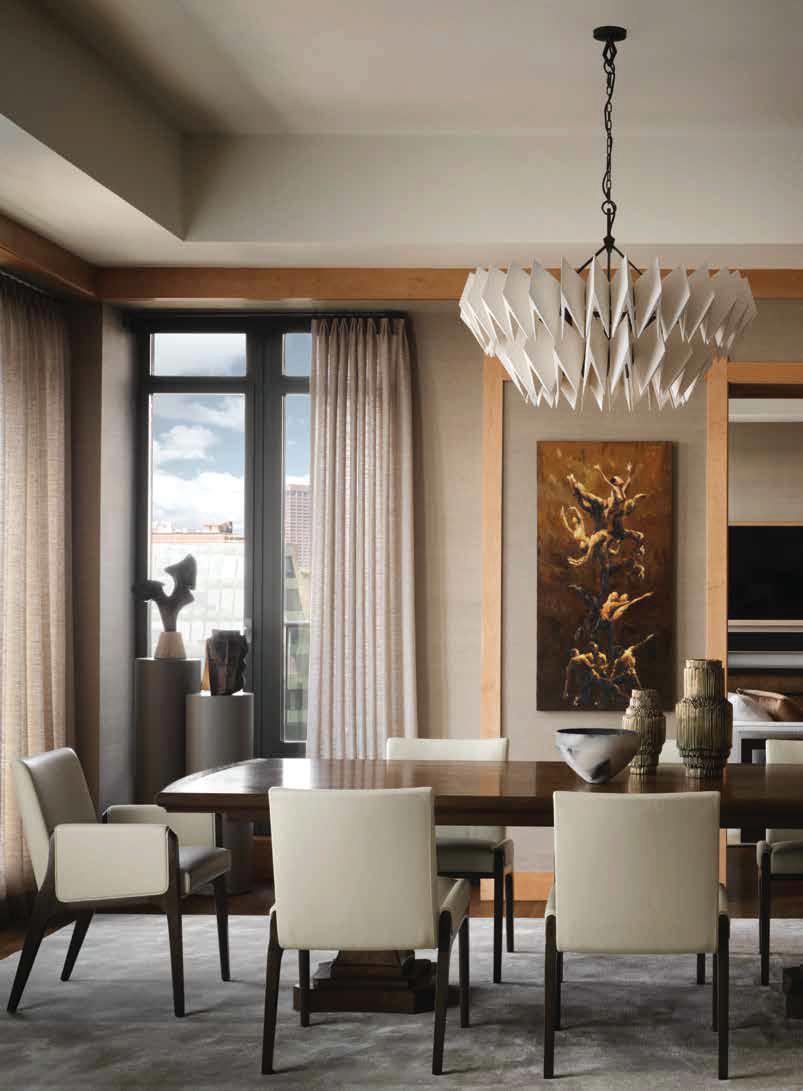 really dynamic,” notes Elms. “We paired it with a painted light fixture that’s constructed of netting and bronze branches by artist Nacho Carbonell. The goal was to bring in some lightness and warmth through the furnishings. I wanted it to feel elegant yet understated and comfortable.”