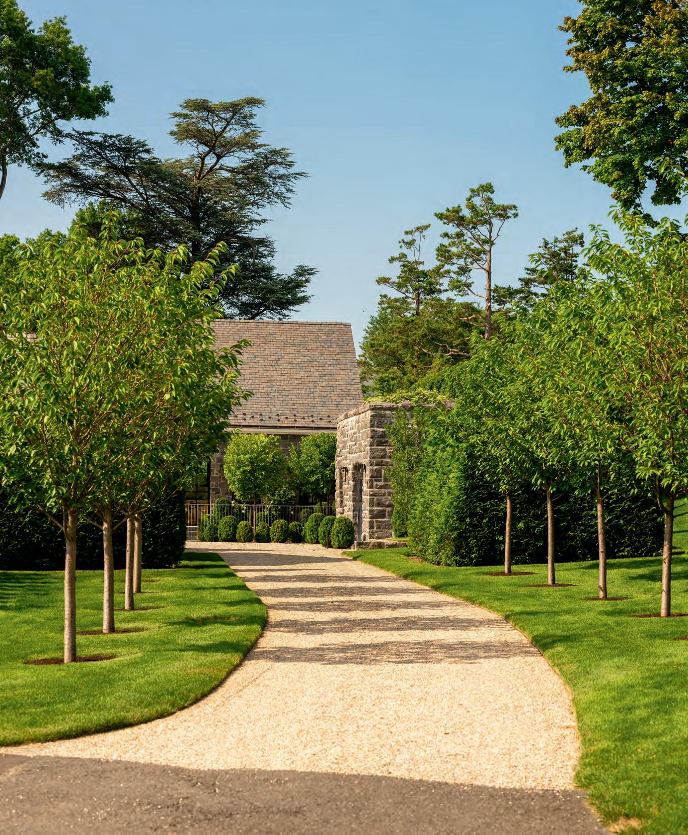 Both the clients and Parker wanted to preserve whatever elements of the landscape could be kept while adding amenities for modern family life. Additionally, deer pressure had diminished many of the older plantings. But Parker liked the garden’s bones, including a walled rose garden and the hornbeam trees around the driveway. “The original plan with the flower garden in the front was genius,” says Parker. “When you put a formal flower garden in front of a body of water, it cheapens both the garden and the water.”