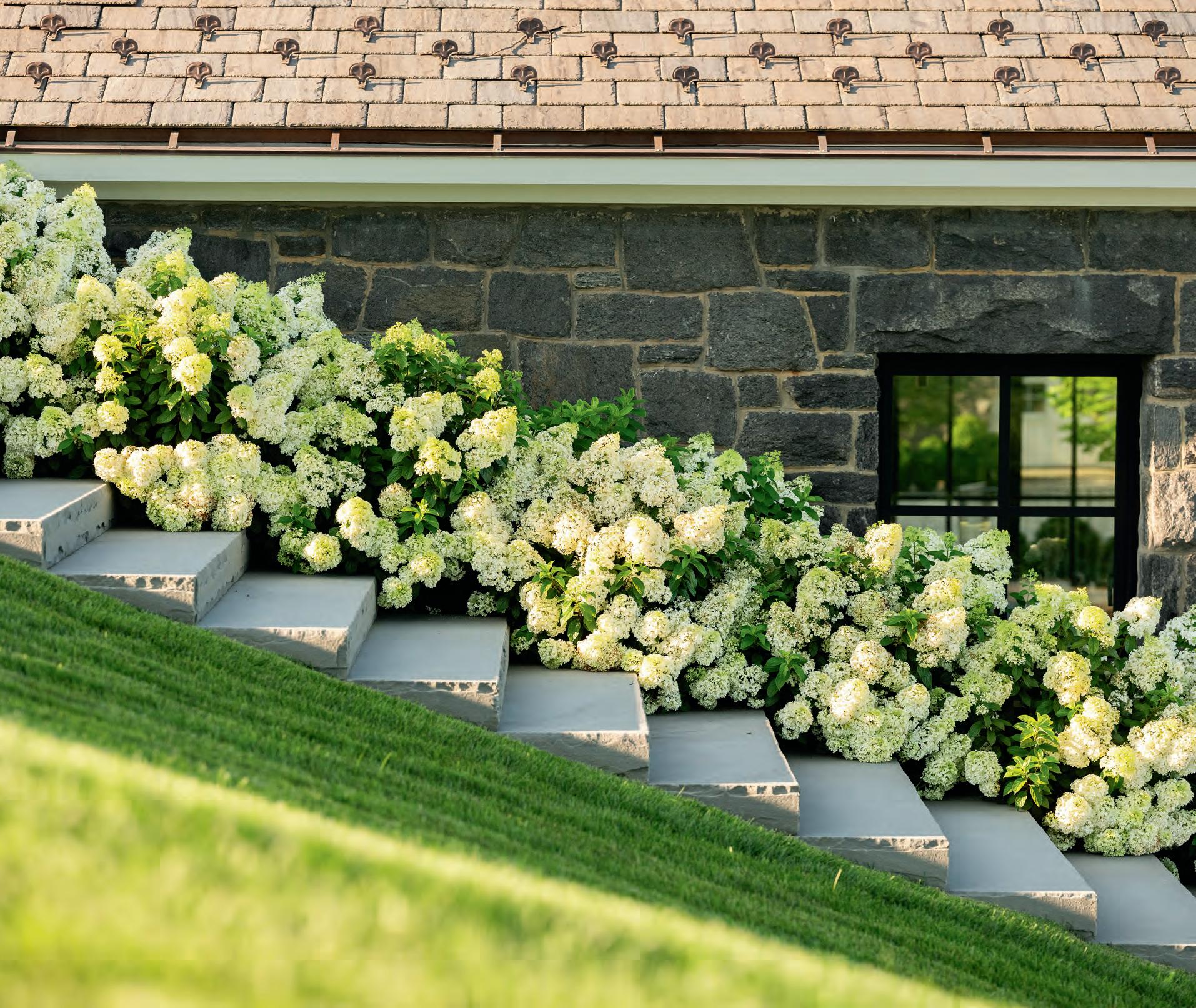 Parker strategically exercised restraint with the plant palette to keep the focus on the Long Island Sound views. Boxwood, hydrangea, and hornbeams repeat throughout the combined properties, creating a sense of cohesion and calm. Parker says, “Simplicity is sometimes the hardest thing.”