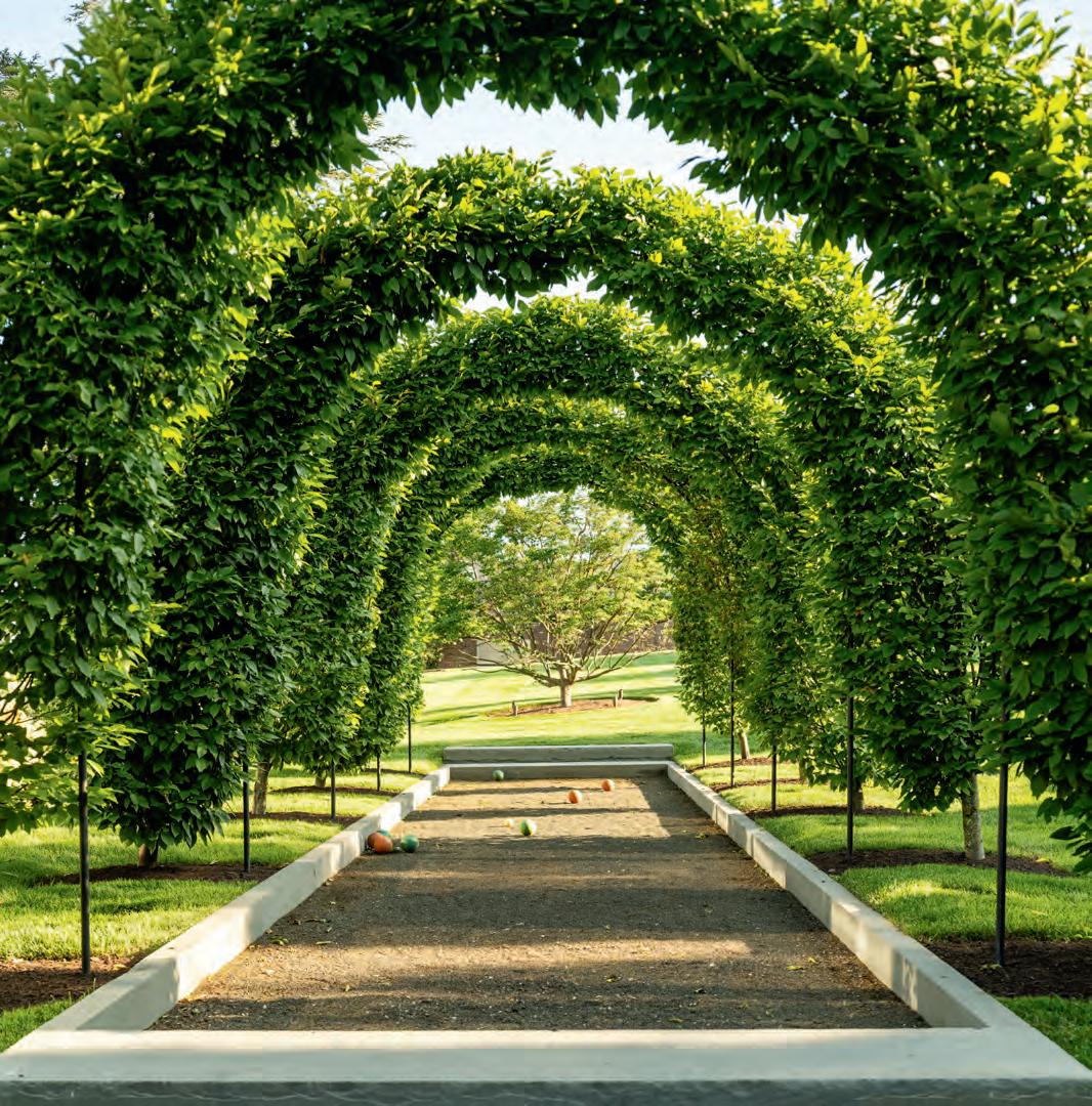 To connect the two houses, Parker designed steps alongside the pool house, which is set into a hill. She also tucked a bocce court in behind the pool house, creating a destination en route to the pool. Adding the new pool below allowed Parker to remove the main house’s pool, which spoiled the views of the Sound. “Now, you have that long expanse of lawn and that magnetic pull of the water,” says Parker. With Parker and Hutker Architects’s work complete, this garden is ready for its next century. ✹