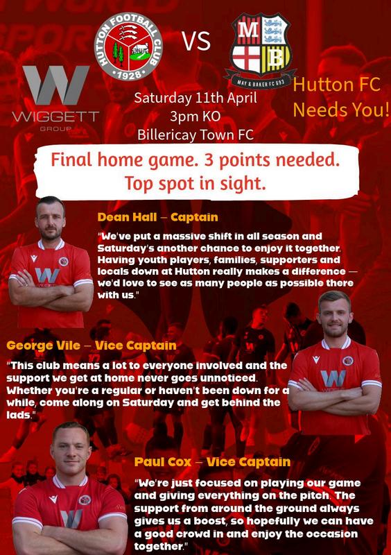 Good luck to Hutton FC today in their last home game of the season!