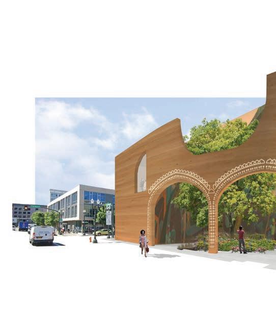 The Oregon Black Pioneer’s Black Heritage Museum is a culmination of a series of exercises throughout the semester that works to develop an aesthetic language for the black community of Portland Oregon. It draws from iconic forms of historic architecture of the former Albina community. Half arches, derived from the onion dome and windows of the Hills Block Building, is used as a procedural tool to develop the site response and massing of the project. Half arched and circular cut outs made within the project represent the theme of carving out a home for one’s self despitesystematic attempts made to remove the community.