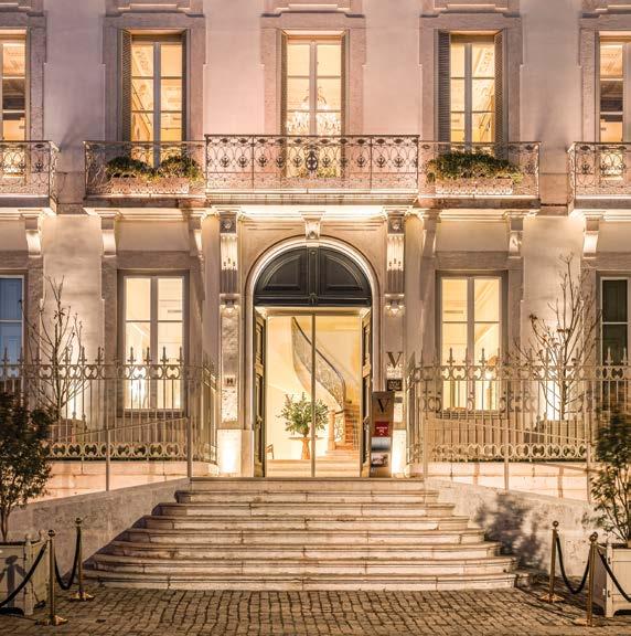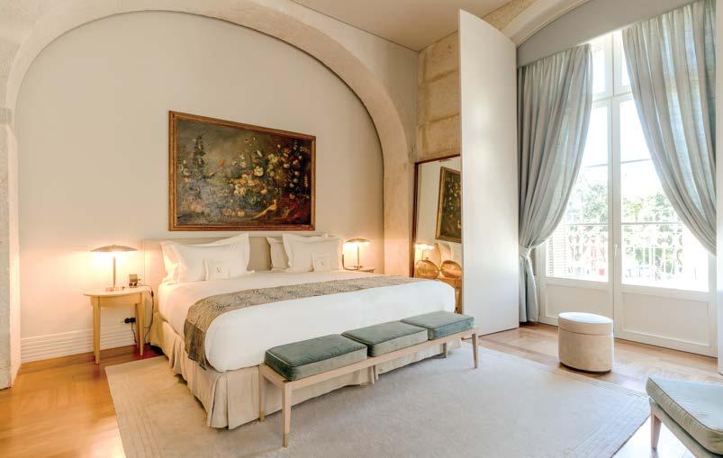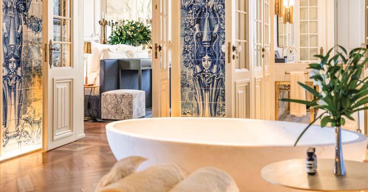 pontuados por peças de arte contemporânea e detalhes de luxo que convêm a um palácio do século XVIII adaptado aos padrões de hospitalidade do século XXI.