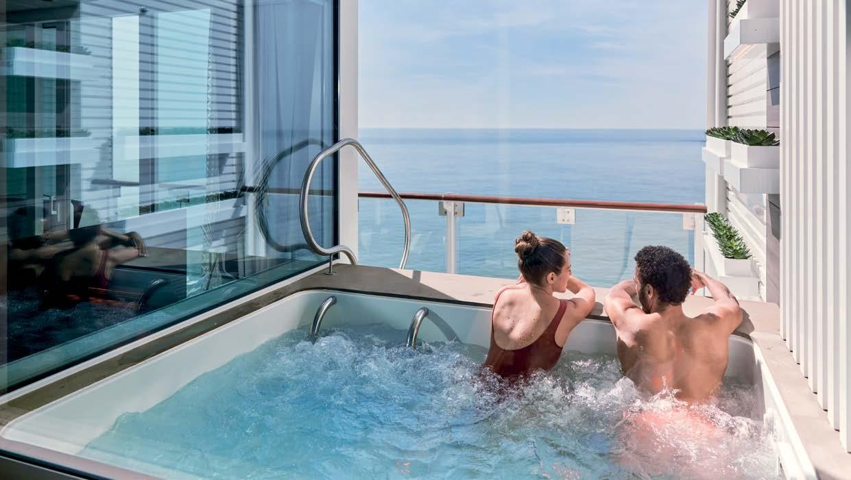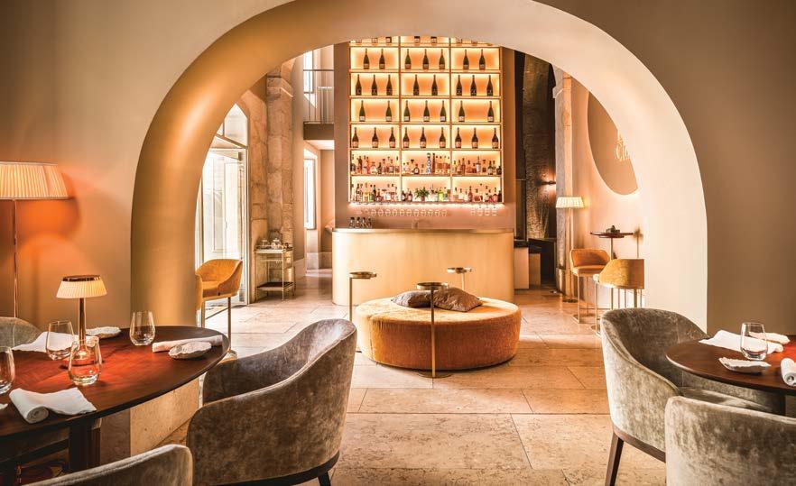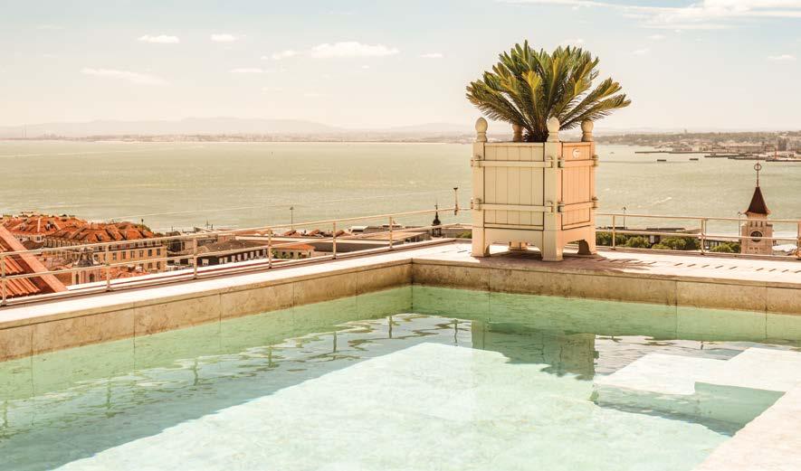 o majestoso rio Tejo, estabelecendo uma relação direta entre as paisagens lisboetas e o conforto interior. Uma das grandes mais valias do Verride é o seu telhado panorâmico, onde se localizam o bar e a piscina exterior com vistas a 360° sobre os telhados vermelhos de Lisboa e o rio. Este espaço tornou-se referência para momentos cocktails e gastronomia leve, num ambiente que transita naturalmente entre o social e o contemplativo.