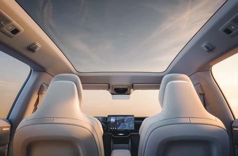 No interior, entra-se num ambiente onde tudo respira calma e intenção. Materiais sustentáveis, texturas suaves, luz ambiente cuidadosamente desenhada – cada elemento contribui para uma atmosfera que é simultaneamente tecnológica e acolhedora. Aqui, o luxo não é exuberante, é sentido.