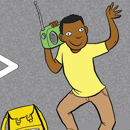 Examples The boy with the radio is wearing a yellow T-shirt . Which number is the girl’s foot on now? 8 . Complete the sentences. Write 1, 2, 3, 4 or 5 words.