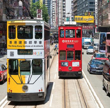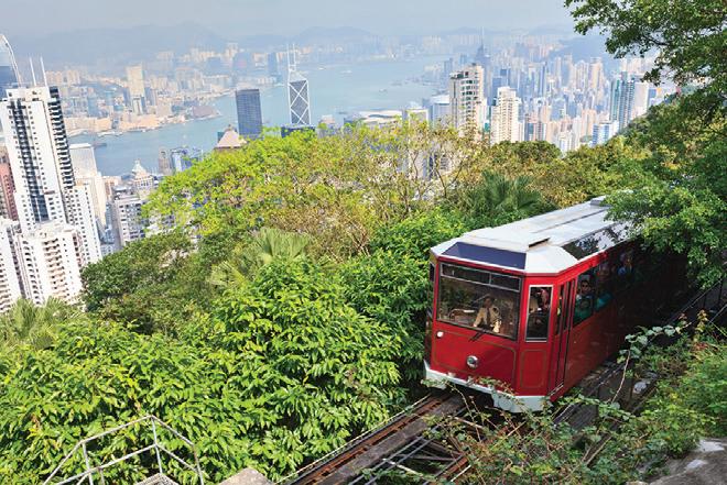 2 A tram takes people to Victoria Peak, a famous mountain. e tram started to operate in 1888.
