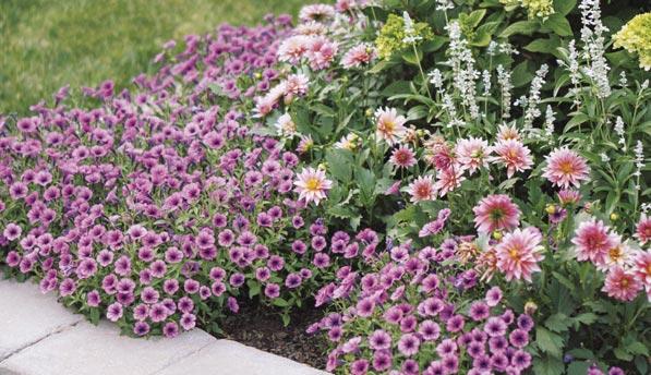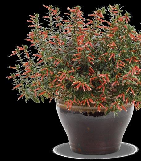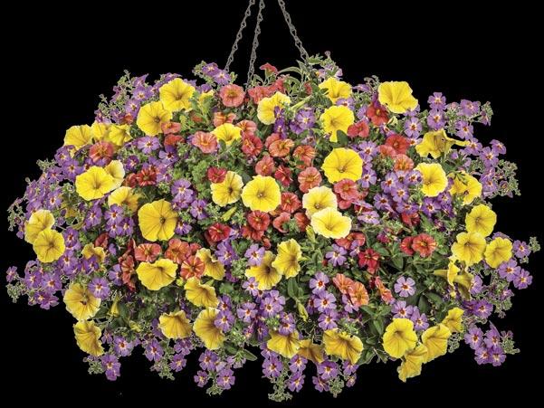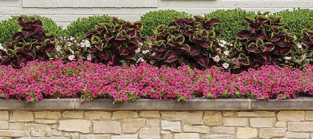 Above and opposite, from left to right: SUPERTUNIA VISTA® BUBBLEGUM® II Petunia, VERMILLIONAIRE® Cuphea, COLORBLAZE® TORCHLIGHT® Coleus, SUPERTUNIA MINI VISTA® Pink Star Petunia, SUNCREDIBLE® Yellow Helianthus (sunflower), TRUFFULA™ Pink Gomphrena (globe amaranth), SUPERTUNIA VISTA® Silverberry Petunia and UNPLUGGED® SO BLUE™ Salvia