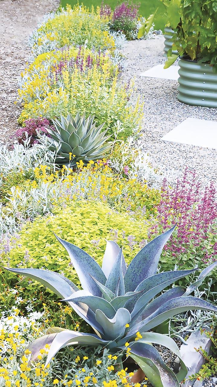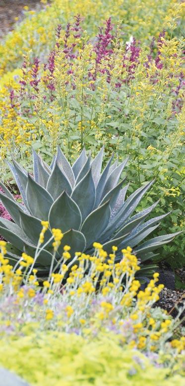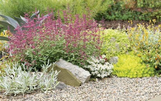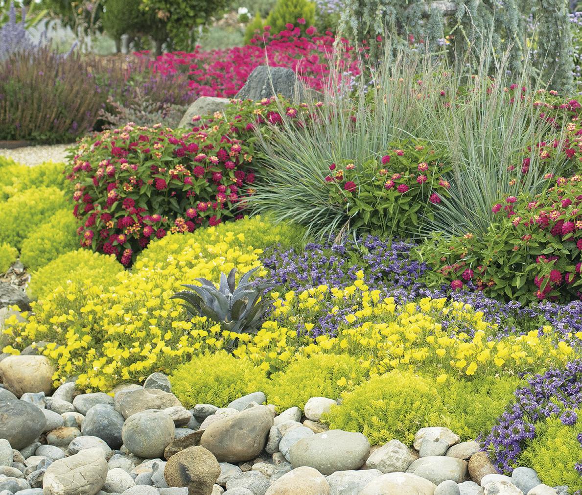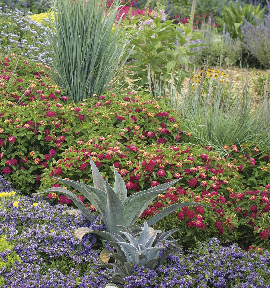 Annuals: MAESTRO® Coral Agastache, MAESTRO® Gold Agastache (hummingbird mint), FLAMBÉ® Yellow Chrysocephalum, SILVER RIVER™ Didelta, MOJAVE® Fuchsia Portulaca, MOJAVE® Mango Portulaca (purslane), STARDIVA® White Scaevola and LEMON CORAL® Sedum