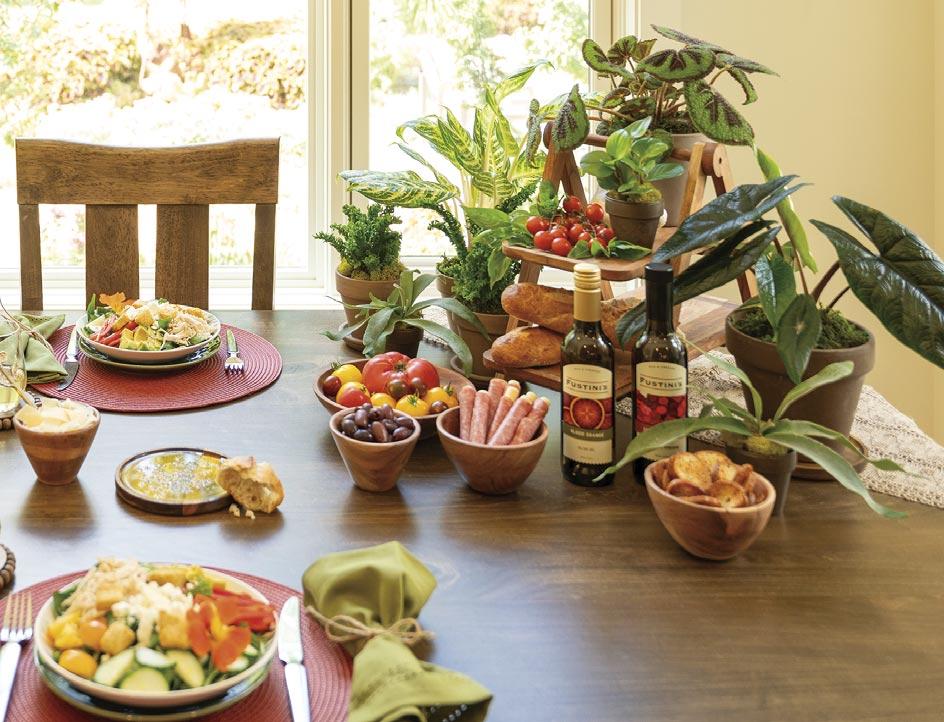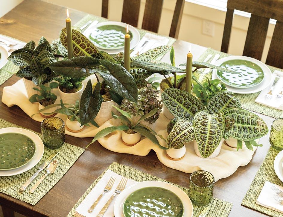 A simple centerpiece made with small pots of leafjoy littles® and low growers adds a welcoming touch without blocking sightlines between guests. Set them on a runner or style the table corner alongside candles, linens and serveware to create a polished look. Switch up the elements to suit the vibe – earthy, Mediterranean or modern.