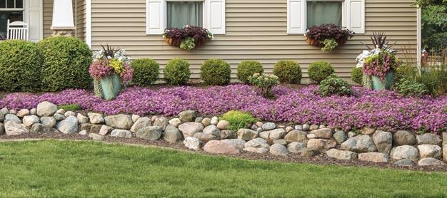 Perennials: ‘Pink Diamonds’ Dicentra, ‘Lemon Purrfection’ Nepeta, ROCK ‘N LOW ® ‘Boogie Woogie’ Sedum and ROCK ‘N ROUND® ‘Popstar’ Sedum