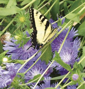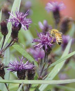 Opposite, 1, 6 and 8: Natives bed in fall color; see p. 30 2: ‘MIDNIGHT EXPRESS® Cercis (redbud) 3: ‘Apple Slices’ Spigelia 4: Bee on Butterfly Weed Asclepias tuberosa 5: Bee on ‘Prairie Princess’ Vernonia (ironweed) 7: Bee on ‘Webmaster’ Tradescantia (spiderwort)