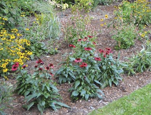 Perennials: ‘Firefly Sunshine’ Achillea (yarrow), MEANT TO BEE® ‘Queen Nectarine’ Agastache (anise hyssop), Butterfly Weed Asclepias tuberosa, DECADENCE® ‘Lemon Meringue’ Baptisia (false indigo), COLOR CODED® ‘Knock ‘em Red’ Echinacea (coneflower), PRAIRIE WINDS® ‘Cheyenne Sky’ Panicum (red switch grass), PRAIRIE WINDS® ‘Niagara Falls’ Panicum (switch grass), PRAIRIE WINDS® ‘Totem Pole’ Panicum (switch grass), BEJEWELED® ‘Rose Rhinestones’ Penstemon, ‘Midnight Masquerade’ Penstemon, ‘Treasure Trove’ Rudbeckia (black-eyed Susan), PRAIRIE WINDS® ‘Brush Strokes’ Schizachyrium (little bluestem), ‘Apple Slices’ Spigelia, TOTALLY STOKED™ ‘Riptide’ Stokesia (Stokes’ aster), ‘Webmaster’ Tradescantia (spiderwort), ‘Prairie Princess’ Vernonia (ironweed) and ‘Dragon Slayer’ Yucca